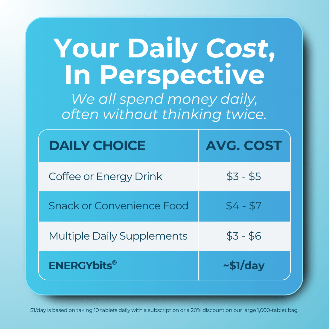 Looking for a fast, easy way to fuel your day and have your nutrition and protein needs met without cooking or cleaning? ENERGYbits® spirulina tablets supercharge your work day and workouts by giving you steady energy, focus and endurance. These nutrient dense, antioxidant-rich, high-protein, plant-based tablets reduce hunger and improve focus without chemicals, caffeine or sugar. With more protein than steak (3x steak), and just one ingredient and one calorie per tablet, ENERGYbits® are perfect for intermittent fasting, snacks and sports. Grown organically and endorsed by doctors nationwide.